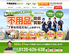 不用品回収を中心とした京都の優良業者です。不用品回収業者でありながら遺品整理の専門家である遺品整理士も在籍しており、ハウスクリーニングや不動産売却にも対応しており、幅広いサービスを提供しています。即日対応、高価買取、女性スタッフ在籍と、お客様にとって確かな選ばれる理由があります。