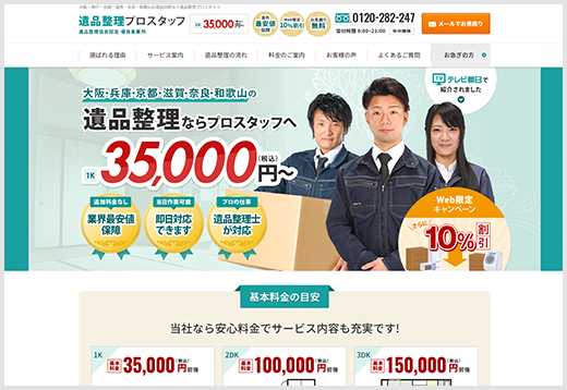 「遺品整理を1日でも早く終わらせたい」「丁寧なサービスを受けたい」「費用を抑えたい」そんな方には、遺品整理プロスタッフをお勧めします。