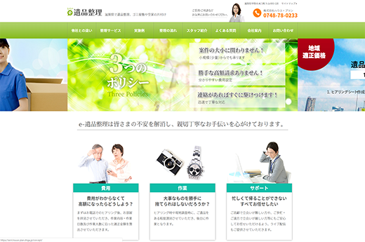 滋賀全域を即日スピードで対応し、遺品整理士協会から「優良事業所」の認定を受けていますので、安心して遺品整理を任せられます。教育もしっかりしていてスタッフの対応が良いと、利用者の満足度が高いのも特徴です。